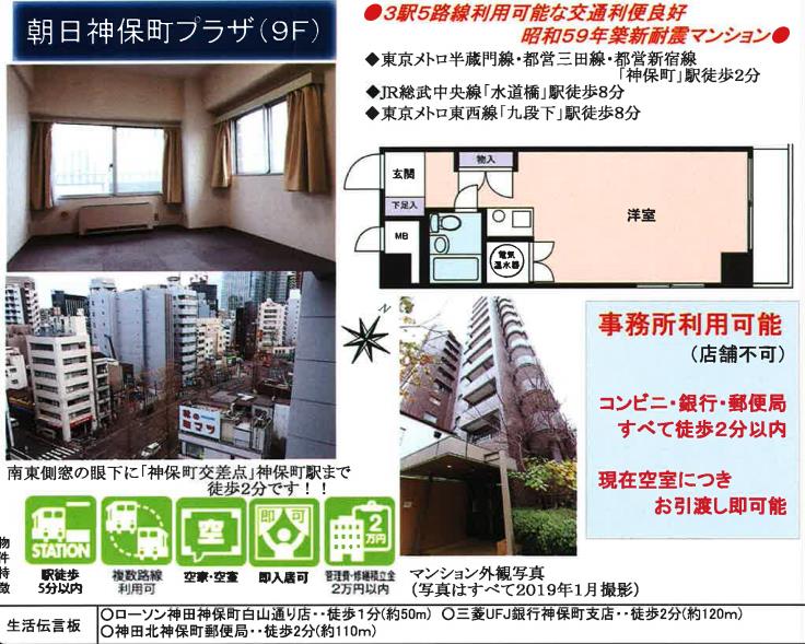 • 自社専任物件ーーーワンルーム半蔵門線神保町徒歩2分