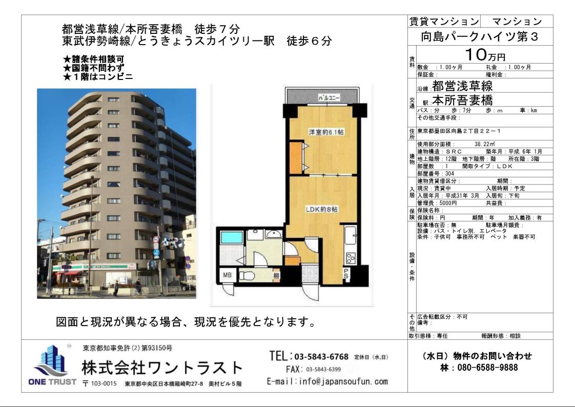 • 自社管理物件ーーー都営浅草線 本所吾妻橋駅徒歩7分 審査簡単